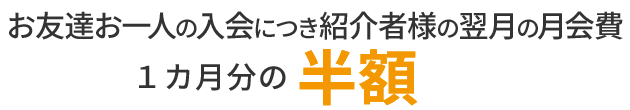 (既存会員様のご紹介のみ適用。ご紹介された方、入会された方の翌月会費を半額とさせていただきます。*ご紹介は最大2名様まで)